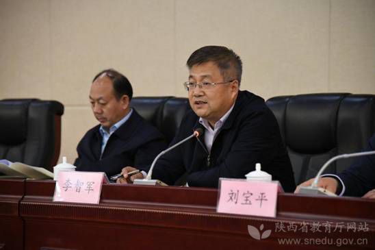 陕西省委高教工委副书记李智军(右)在全省高校“双百工程”暨特色产业扶贫工作会议上讲话