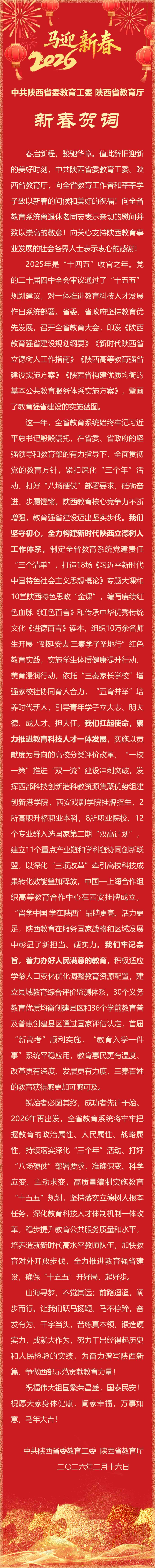 中共陕西省委教育工委 陕西省教育厅新春贺词