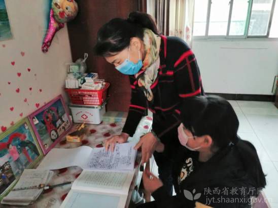 西安高新区阳光小学教师为受助学生辅导作业
